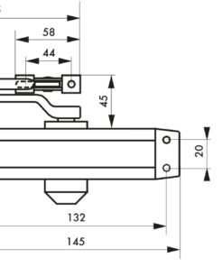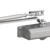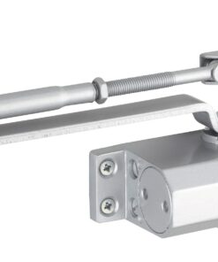 Description: Hydraulic door closer. Molded alloy body. Mount right or left. Possible adjustment of the closing speed and the final jerk per screw. Finish: Lacquered grey Version: 093076: stop at 90°. Use: Automatic closing of doors < 30 kg.
