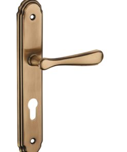 Description: Stamped steel plates. Molten alloy crutches. square steel 7 mm. Screws secable metals. Inter-axis of fixation 195 mm. Finish: Placas de acero embutido. Brazos de aleación fundida ̈ acero de 7 mm. Tornillos para metal. Version: Without hole for interior door. With condemnation button for bathroom door and W-C. With key hole for interior and exterior door. With European cylinder hole for exterior door. Usage: