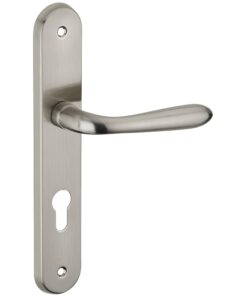 Description: Stamped steel plates. Molten alloy crutches. square steel 7 mm. Screws secable metals. Inter-axis of fixation 195 mm. Finish: Brushed nickel plated Version: Without hole for interior door. With condemnation button for bathroom door and W-C. With key hole for interior and exterior door. With European cylinder hole for exterior door. Usage: