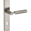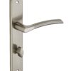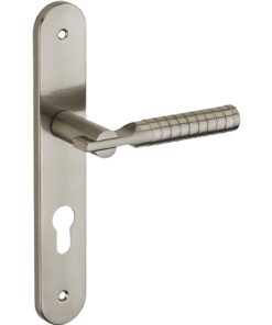 Description: Stamped steel plates. Molten alloy crutches. square steel 7 mm. Recall spring. Screws secable metals. Inter-axis of fixation 195 mm. Finish: Brushed nickel plated Version: Without hole for interior door. With condemnation button for bathroom door and W-C. With key hole for interior and exterior door. With European cylinder hole for exterior door. Usage: