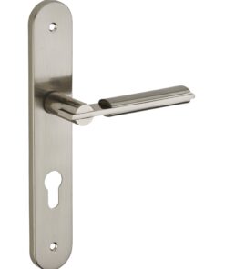 Description: Stamped steel plates. Molten alloy crutches. square steel 7 mm. Recall spring. Screws secable metals. Inter-axis of fixation 195 mm. Finish: Nickel-plated satin Version: Without hole for interior door. With condemnation button for bathroom door and W-C. With key hole for interior and exterior door. With European cylinder hole for exterior door. Usage: