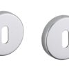 Description : Rosette steel stamped. Invisible fastening by metal screws. Finish: Anodized silver or champagne / nickel-plated satin Version: Stainless steel 304. With condemnation button and indicator light for bathroom door and W-C. With key hole for interior and exterior door. With European cylinder hole for exterior door. Usage: