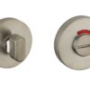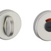 Description : Rosette steel stamped. Invisible fastening by metal screws. Finish: Anodized silver or color F2 / nickel-plated satin Version: Stainless steel 304. With condemnation button and indicator light for bathroom door and W-C. With key hole for interior and exterior door. With European cylinder hole for exterior door. Usage: