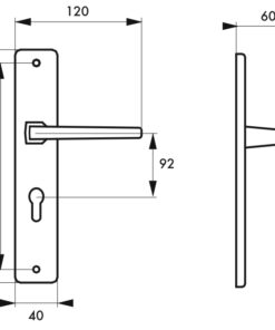 Interior door handle PICARDIE cylinder hole between axes 92 mm
