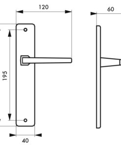 Description: Stamped aluminum plates. Molten aluminum crutches. square steel 7 mm or 8 mm. Metal screws to socket. For door ep. 45 mm max. Fixing spacing 195 mm. Finish: Anodized color F2 Version: Without hole, with condemnation button for interior door. With condemnation and seeing occupation for bathroom and W-C. With key hole for interior door. With European cylinder hole for exterior door. With external pull handle and cylinder hole for landing door. Usage:
