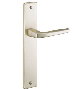 Description: Stamped aluminum plates. Molten aluminum crutches. square steel 7 mm or 8 mm. Metal screws to socket. For door ep. 45 mm max. Fixing spacing 195 mm. Finish: Anodized color F2 Version: Without hole, with condemnation button for interior door. With condemnation and seeing occupation for bathroom and W-C. With key hole for interior door. With European cylinder hole for exterior door. With external pull handle and cylinder hole for landing door. Usage: