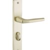 Description: Stamped aluminum plates. Molten aluminum crutches. square steel 7 mm. Recall spring. Screws secable metals. Inter-axis of fixation 195 mm. Finish: Nickel-plated satin Version: Without hole for interior door. With condemnation button for bathroom door and W-C. With key hole for interior and exterior door. With European cylinder hole for exterior door. Usage: