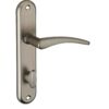 Description: Stamped aluminum plates. Molten aluminum crutches. square steel 7 mm. Screws secable metals. Inter-axis fixing 165 mm / 195mm. Finish: Nickel-plated satin Version: Without hole for interior door. With condemnation button for bathroom door and W-C. With key hole for interior and exterior door. With European cylinder hole for exterior door. Usage: