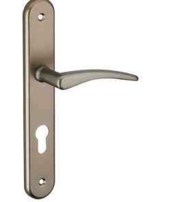 Description: Stamped aluminum plates. Molten aluminum crutches. square steel 7 mm. Screws secable metals. Inter-axis fixing 165 mm / 195mm. Finish: Nickel-plated satin Version: Without hole for interior door. With condemnation button for bathroom door and W-C. With key hole for interior and exterior door. With European cylinder hole for exterior door. Usage: