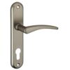 Description: Stamped aluminum plates. Molten aluminum crutches. square steel 7 mm. Screws secable metals. Inter-axis fixing 165 mm / 195mm. Finish: Nickel-plated satin Version: Without hole for interior door. With condemnation button for bathroom door and W-C. With key hole for interior and exterior door. With European cylinder hole for exterior door. Usage: