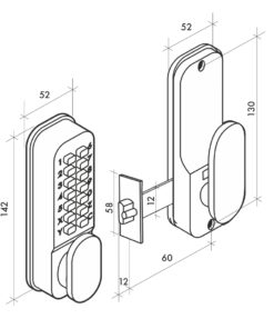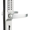 Description: Molded alloy chest. Mechanism with modifiable combination of 2 to 8 numbers or letters. 8,000 possible combinations. Changing the quick combination. Reversible right / left. For door thickness 32 to 55 mm max. Finish: Matte chrome Version: Lock with recessed U-turn bolt. With hook bolt for sliding door Use: Interior door