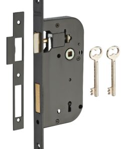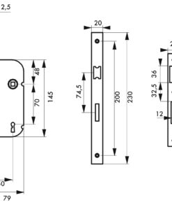 Description: Stamped steel chest. Steel headrest. Reversible alloy U-turn. Steel bolt. Flat steel striker. Mechanism with 4 gorges 2 turns. Reminder of the 1/2 turn by the key. Square 7 mm, between axis 70 mm. 2 nickel-plated steel wrenches. 12 variures Finish: Epoxy black granite (V) Version: Right and left. Headrest square ends (BC). Headrest round ends (BR). Usage:
