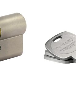 Description: European brass profile. Mechanism with 5 pins. Protection against drilling by 1st pin + hardened steel pusher. Anti-tearing panel. 3 flat mesh keys with property card allowing the reproduction of keys exclusively in the factory. Anti-hooking moving part internal to the cylinder prohibiting any reproduction outside the factory. Option: Anti-piercing needle. Finish: Nickel velvet Version: Half cylinder. Cylinder 2 inputs. Cylinder with button 1 input. Possibility of mounting with detachable panel. Adjustable panel for dimensions 30 x 10 and 35 x 10. (other dimensions on request). Service Point available. Possibility of mounting with detachable button. Use: Flowchart System