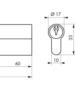 Description: European brass profile. Mechanism with 5 pins. Anti-tearing panel. 3 nickel-plated brass keys. Finish: Brass Version: Half cylinder 1 input. Cylinder 1 button input. Reduced panneton. Usage: