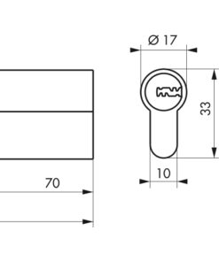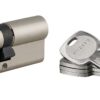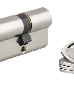 Description: European brass profile. Mechanism with 8 pinsagainst hooking. Protection against needle drilling + 1st pin + hardened steel pusher. Protection against the break-in of the protruding part of the cylinder (anti-snap). Anti-tearing panel. 4 reversible flat keys nickel-plated brass with property card. Finish: Nickel velvet Version: Half cylinder. Cylinder 2 inputs. Cylinder 1 button input. Emergency function: Possibility to insert a key into the cylinder and turn the panel even if a key is engaged inside (detachable panel). Padlock, thresher, contactor barrel. Adjustable panel for the dimension 30×10 (other dimensions on request). Possibility of mounting with detachable button. Possibility of mounting on flowchart with 3 keys. Usage: