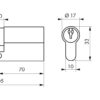 Description: European brass profile. Mechanism with 5 pins. Protection against drilling by 1st pin + hardened steel pusher. Anti-tearing panel. 3 flat mesh keys with property card allowing the reproduction of keys exclusively in the factory. Anti-hooking moving part internal to the cylinder prohibiting any reproduction outside the factory. Option: Anti-piercing needle. Finish: Nickel velvet Version: Half cylinder. Cylinder 2 inputs. Cylinder with button 1 input. Possibility of mounting with detachable panel. Adjustable panel for dimensions 30 x 10 and 35 x 10. (other dimensions on request). Service Point available. Possibility of mounting with detachable button. Use: Flowchart System