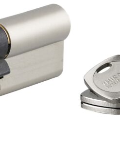 European brass profile. 7 to 16 nickel silver pin mechanism.Protection against the destruction of theprojecting portion of the cylinder (anti-snap). Drivercam made of powdered metal. 3 reversible brass nickelplated keys with a personal security card for key copies.Option :Protection against drilling by hardened steel insert and pins.