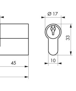 Description: European brass profile. Lock cylinder with 5 pin mechanism. Anti-tearing panel. 3 nickel-plated steel wrenches. Finish: Brass or nickel-plated Version: 40 mm screw for glass door. Screws of 45 and 50 mm for PVC and aluminum door. 60 mm screw for wooden door. Half cylinder 1 input. Cylinder 1 button input. Usage: