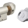 Description: European brass profile. Mechanism with 5 pins. Protection against drilling by 1st pin + hardened steel pusher. Anti-tearing panel. 3 flat mesh keys with property card allowing the reproduction of keys exclusively in the factory. Anti-hooking moving part internal to the cylinder prohibiting any reproduction outside the factory. Option: Anti-piercing needle. Finish: Nickel velvet Version: Half cylinder. Cylinder 2 inputs. Cylinder with button 1 input. Possibility of mounting with detachable panel. Adjustable panel for dimensions 30 x 10 and 35 x 10. (other dimensions on request). Service Point available. Possibility of mounting with detachable button. Use: Flowchart System