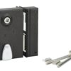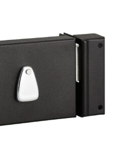 Description: Arched steel trunk and striker. Steel bolt. Steel U-turn. Long alloy barrel. 40 mm. Mechanism with 4 gorges 2 turns with pull or clutter. Reversible 1/2 tower bolt for door opening to the outside. Square?6 mm. 2 nickel-plated keys. 12 variures. Key entry and steel clutter. Has? PRINT: Reminder of the U-turn by the key Finish: Epoxy black granite Version: A draw. Right and left. Usage: