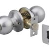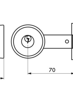 Description: Outer pommel in stamped steel with pin safety cylinder. Inner knob in stamped steel with condemnation button. Reversible 1/2 tower bolt with safety device and rectangular headrest. Flat striker. Axis adjustable 60/70mm. 3 nickel-plated steel wrenches. Finish: Matte chrome. Polished brass. Version: 60 mm axis case Use: Exterior door ep. 35 to 50 mm