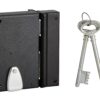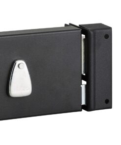Description: Arched steel trunk and striker. Steel bolt. Steel U-turn. Long alloy barrel. 40 mm. Mechanism with 4 gorges 2 turns with pull or clutter. Reversible 1/2 tower bolt for door opening outside. Square 6 mm. 2 nickel-plated keys. 12 variures. Key entry and steel clutter. Has? PRINT: Reminder of the U-turn by the key Finish: Epoxy black granite Version: A draw. Right and left. Usage: