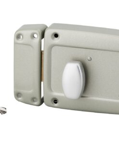 Description: Trunk and striker stamped steel. Pin cylinder Ø 25 for door of 30 mm max. Push cylinder for opening the door. Inner condemnation by button. PVC outer handle. 3 nickel-plated keys. Finish: Lacquered grey Version: Right and left Use: Garage door with lateral displacement and swing