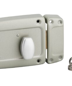 Description: Trunk and striker stamped steel. Pin cylinder Ø 25 for door of 30 mm max. Push cylinder for opening the door. Inner condemnation by button. PVC outer handle. 3 nickel-plated keys. Finish: Lacquered grey Version: Right and left Use: Garage door with lateral displacement and swing