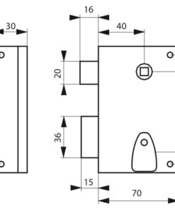 Description: Arched steel trunk and striker. Steel bolt. Steel U-turn. Long alloy barrel. 40 mm. Mechanism with 4 gorges 2 turns with pull or clutter. Reversible 1/2 tower bolt for door opening to the outside. Square?7 mm. 2 nickel-plated keys. 12 variures. Key entry and steel clutter. Has? PRINT: Reminder of the U-turn by the key Finish: Epoxy black granite Version: A draw. Right and left. Usage: