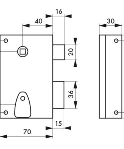 Description: Arched steel trunk and striker. Steel bolt. Steel U-turn. Long alloy barrel. 40 mm. Mechanism with 4 gorges 2 turns with pull or clutter. Reversible 1/2 tower bolt for door opening outside. Square 7 mm. 2 nickel-plated keys. 12 variures. Key entry and steel clutter. A DRAW: Reminder of the U-turn by the key Finish: Epoxy black granite Version: Right and left. 309133-309143 : Anti-corrosion coating Use :