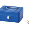Description: Stamped steel, chrome handle. Cylinder lock (2 keys provided). Internal compartment with currency in P.V.C., removable Finish: Epoxy colors varied according to availability. Version: Use: Metal box ideal for storing change