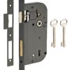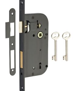 Description: Stamped steel chest. Steel headrest. Reversible alloy U-turn. Steel bolt. Flat steel striker. Mechanism with 4 gorges 2 turns. Reminder of the 1/2 turn by the key. Square 7 mm, between axis 70 mm. 2 nickel-plated steel wrenches. 12 variures Finish: Epoxy black granite (V) Version: Right and left. Headrest square ends (BC). Headrest round ends (BR). Usage: