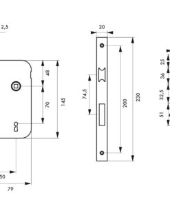 Description : Steel box stamped thickness 11 mm. Steel headrest round tips. Reversible U-turn without disassembly. of the trunk. Bichromated galvanized alloy bolt. Flat steel striker. Mechanism with 2 Square 7 mm, centre distance 70 mm. 1 key. 12 variures. Finish: Epoxy black granite (V) Version: Use: