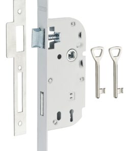 Description: Stamped steel chest. Steel headrest. Reversible alloy U-turn without disassembling the trunk. Steel bolt. Flat steel striker. 1-turn mechanism. Square 7 mm, between axis 70 mm. 1 key. 6 variures Finish: Epoxy white (V) – Zingué white (ZB) Version: Headrest square ends (BC) – Headrest round ends (BR). 2 keys. Use: Isoplane door < 40 kg, (NOT GUARANTEED IN CASE OF COUNTER-BEQUILLAGE)