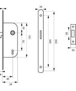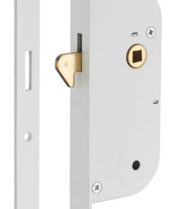 Description: Stamped steel chest. Steel headrest round tips. Steel hook bolt. Flat steel striker. Square 7 mm, centre distance 70 Finish: Epoxy white Version: Keyless – A condemnation – 2 keys. Use: Sliding interior door