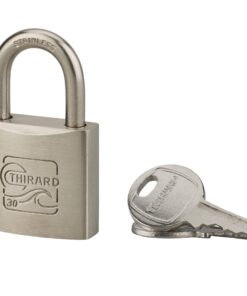 Description: Stainless steel body. Stainless steel handle. Pin mechanism. Double bolt locking. Water flow hole. 2 nickel-plated brass keys. Finish: Padlock in brushed stainless steel Version: Single anchor for size 30mm. Use: Marine