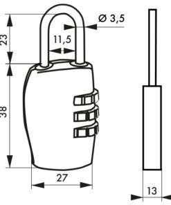 Description : Padlock Body alloy molded. Nickel-plated steel handle. Virole mechanism. Editable combination. Finish: Matching colors Version: Use: Luggage