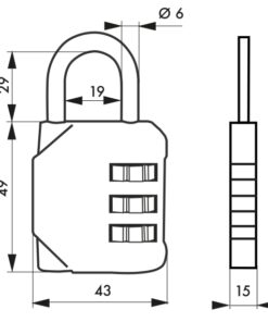 Description : Padlock Body alloy molded. Nickel-plated steel handle. Mechanism with 4 viroles. Editable combination. Finish: Silver Version: Use: Interior