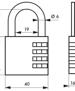 Description: Molded alloy body. Nickel-plated steel handle. Mechanism with 4 viroles. Modifiable combination (10,000 possible combinations). Finish: Black Version: Use: Interior