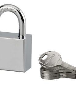 Description: Chrome steel body. Nickel-plated cemented steel handle. Disk mechanism. Double lock. 4 keys. Finish: Chrome-plated steel Version: Use: Construction site
