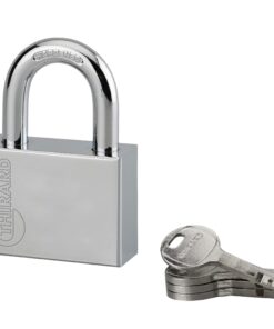 Description : Padlock Chrome steel body. Nickel-plated cemented steel handle. Disk mechanism. Double lock. 4 keys. Finish: Chrome-plated steel Version: Use: Construction site
