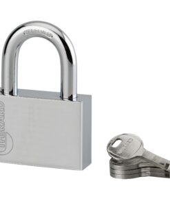 Description: Chrome steel body. Nickel-plated cemented steel handle. Disk mechanism. Double lock. 4 keys. Finish: Chrome-plated steel Version: Use: Construction site