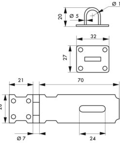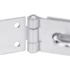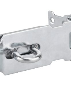 Description: Steel. Covering of screws in the closed position. Finish: Zingué Version: 100 mm padlock holder with 40 mm padlock Use: Trunk closure. Doors.