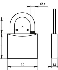 Description : One-piece brass body padlock. Stainless steel handle. Pin mechanism. Double anchoring by bolts. Gasket. Water flow hole. 2 nickel-plated steel keys. Finish: Polished brass Version: Handle 1/2 high and high for size 40 mm. Possibility of additional keys on number. Padlock on imposed number and on the same combination. Possibility of flowchart compatible with HG5 system (from 40mm). 2 or 3 keys. Use: Outdoor