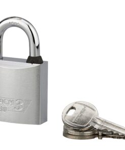 Description : One-piece nickel-plated brass body padlock. Stainless steel handle. Pin mechanism. Double locking by pens. Gasket. Water flow hole. 3 nickel-plated steel keys. Finish: Nickel-plated Version: High handle for size 40 mm. Possibility of additional keys on number. Padlock on imposed number and on the same combination. Possibility of flowchart compatible with HG5 system (from 40mm), 2 or 3 keys. Usage: Industry