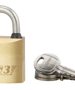 Description : One-piece brass body padlock. Stainless steel handle. Pin mechanism. Double anchoring by bolts. Gasket. Water flow hole. 2 nickel-plated steel keys. Finish: Polished brass Version: Handle 1/2 high and high for size 40 mm. Possibility of additional keys on number. Padlock on imposed number and on the same combination. Possibility of flowchart compatible with HG5 system (from 40mm). 2 or 3 keys. Use: Outdoor