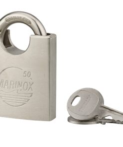 Description: Stainless steel body with shoulder handle protector. Stainless steel handle. Pin mechanism. Double locking by balls. 2 nickel-plated steel keys. Finish: Brushed stainless steel Version: Additional keys on model. Without manufacturing on imposed number. Padlock on the same combination for dimension 50 mm. Use: Outdoor, anti-corrosion