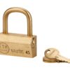 Description : Monobloc brass body. Nickel-plated cemented steel handle. Pin mechanism. 3 brass wrenches. Finish: Polished brass Version: 55 mm HG for flowchart. Additional keys on number. Optional prisoner key for 45 – 55 mm (The padlock must be closed to take back the key). Padlock on imposed number and on the same combination. Use: Indoor