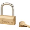 Description : Monobloc brass body. Brass handle. Pin mechanism. 3 brass wrenches. Finish: Polished brass Version: 55 mm HG for flowchart. Additional keys on number. Optional prisoner key for 45 – 55 mm. (The Padlock must be closed to take back the key). Padlock on imposed number and on the same combination. Use: Outdoor, anti-corrosion