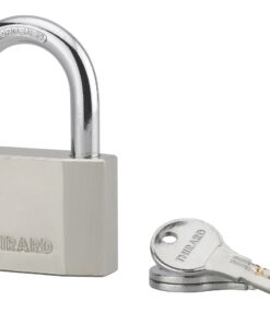 Description: Steel body. Nickel-plated cemented steel handle. Pin mechanism. Double locking by balls. Hole flow of water. 3 reversible keys. Finish: Satin chrome. Version: Usage: Construction site